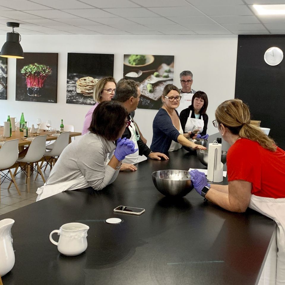 Une excellente façon de s'approprier la culture d'un endroit est certainement d'expérimenter sa cuisine locale. Pour m'imprégner d'une destination, j'adore apprendre, brasser, assembler, farcir, faire bouillir et goûter. C'est ce que j'ai voulu partager avec mon groupe en Autriche. Nous avons donc organisé un cours de cuisine autrichienne chez une jeune chef en émergence. Nous savions qu'elle était excellente dans la cuisine traditionnelle, mais comme enseignante… mystère.