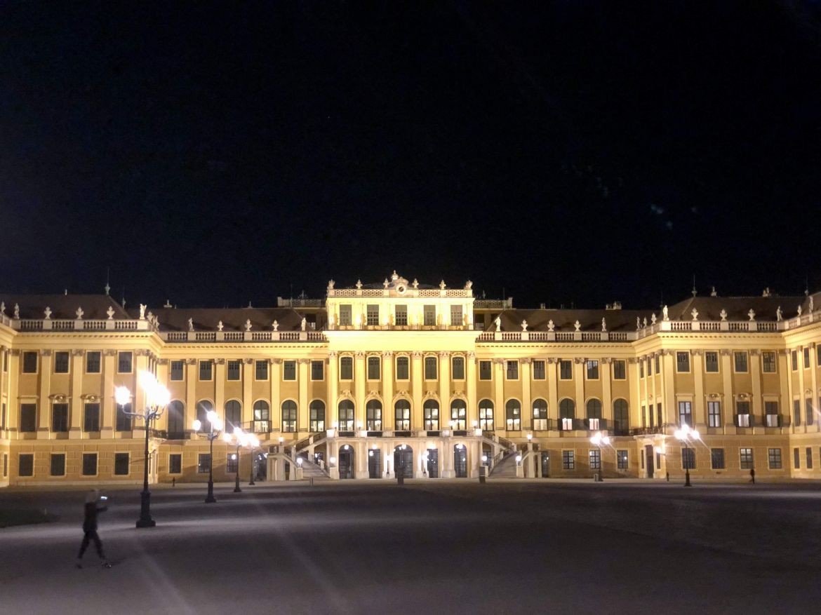 Arrivés sur le site de Schönbrunn à sa fermeture, nous sommes entrés en exclusivité dans le palais qui nous était offert JUSTE POUR NOUS. Une visite guidée des plus intéressantes et, surtout, la salle de bal pour valser, JUSTE POUR NOUS. Schönbrunn, le soir avec la lumière, c'est grandiose!